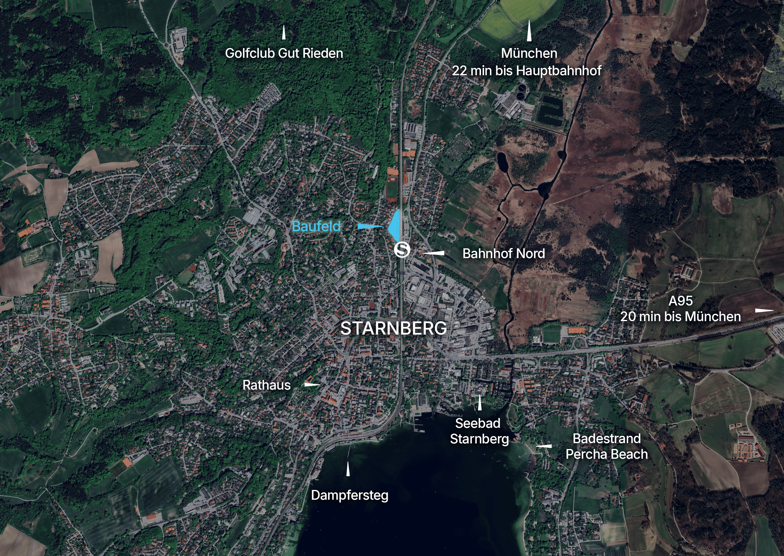 Der Standort bietet nicht nur Idylle, sondern auch ideale Anbindung. In 19 Minuten mit der S-Bahn ins Zentrum von München und in 2 Minuten ans Wasser.